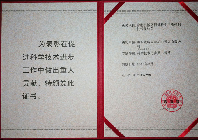 2018年2月《巖巷機(jī)械化掘進(jìn)粉塵污染控制技術(shù)及裝備》獲得國(guó)家教育部科學(xué)技術(shù)進(jìn)步二等獎(jiǎng)2018年2月《基于塵源分區(qū)局部封閉霧......詳細(xì)>>2017年山東省西部經(jīng)濟(jì)隆起帶和扶貧開發(fā)區(qū)域引進(jìn)...
